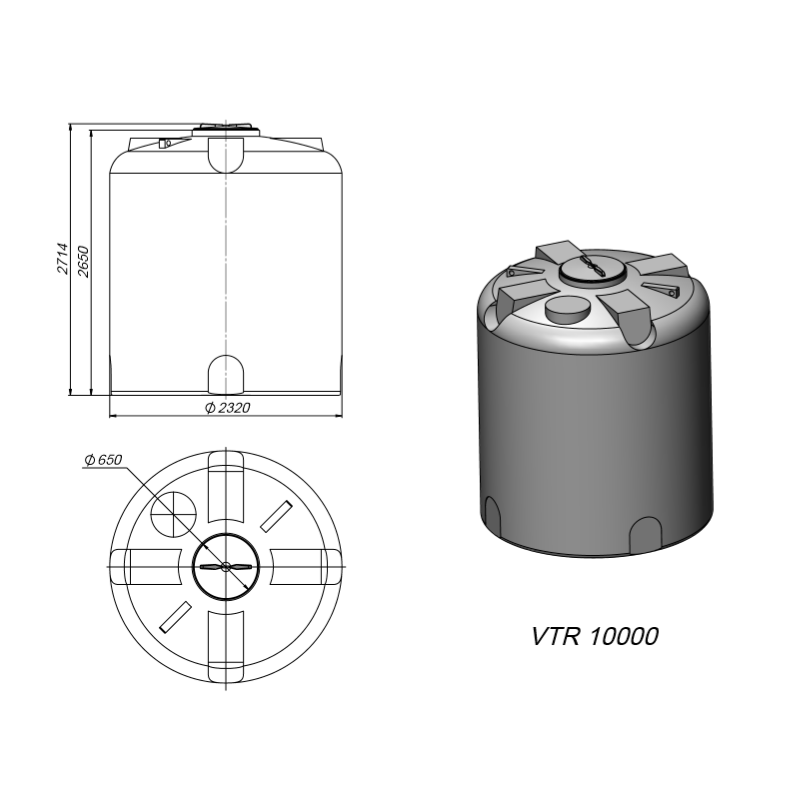 емкость, объем: 10 000 л, форма емкости: цилиндрическая, тип эксплуатации: наземная, расположение: вертикальное, диаметр горловины: 65 см, материал: полиэтилен