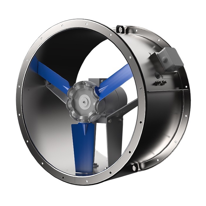 осевой вентилятор, максимальный расход воздуха 54 970 куб. м/ч, частота вращения 1 000 1/мин, максимальный располагаемый напор 267 Па, присоединительный размер 1250 мм, материал корпуса: сталь, монтаж: в воздуховод, степень защиты: IPX4